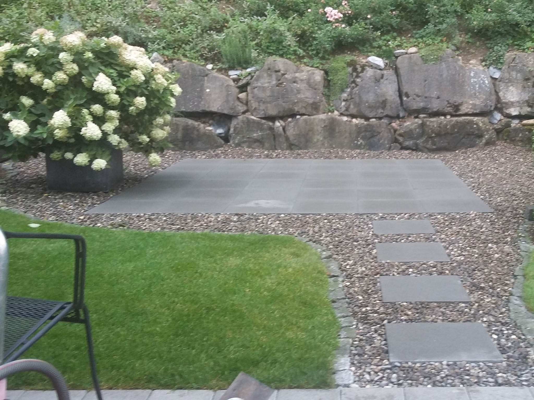 - Verlegen von Naturstein-, Beton- oder Keramikplatten für Terrassen, Wege und Sitzplätze