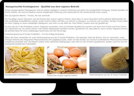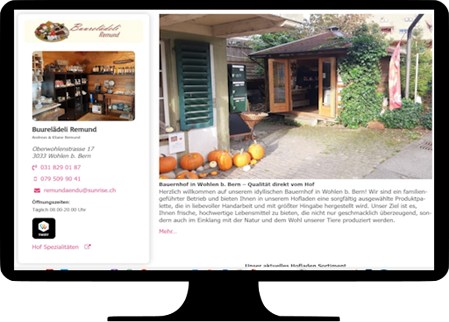 Wir präsentieren Ihren Hofladen auf einer vollständigen Seite mit folgenden Inhalten: